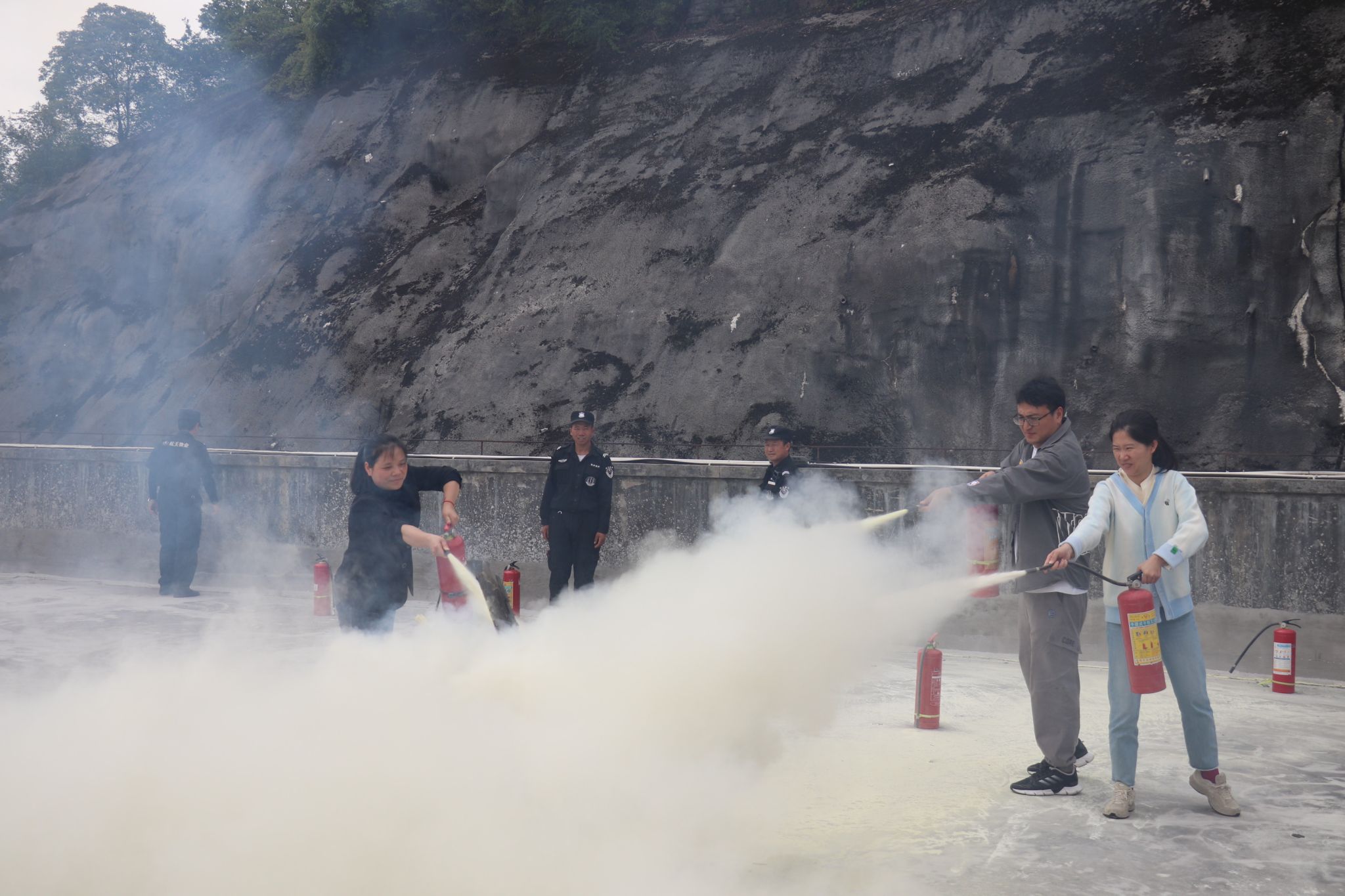 随后,在保卫处安全教育科科长王滨的指导下,太阳成集团tyc122cc师生代表使用灭火器进行灭火实操演练。