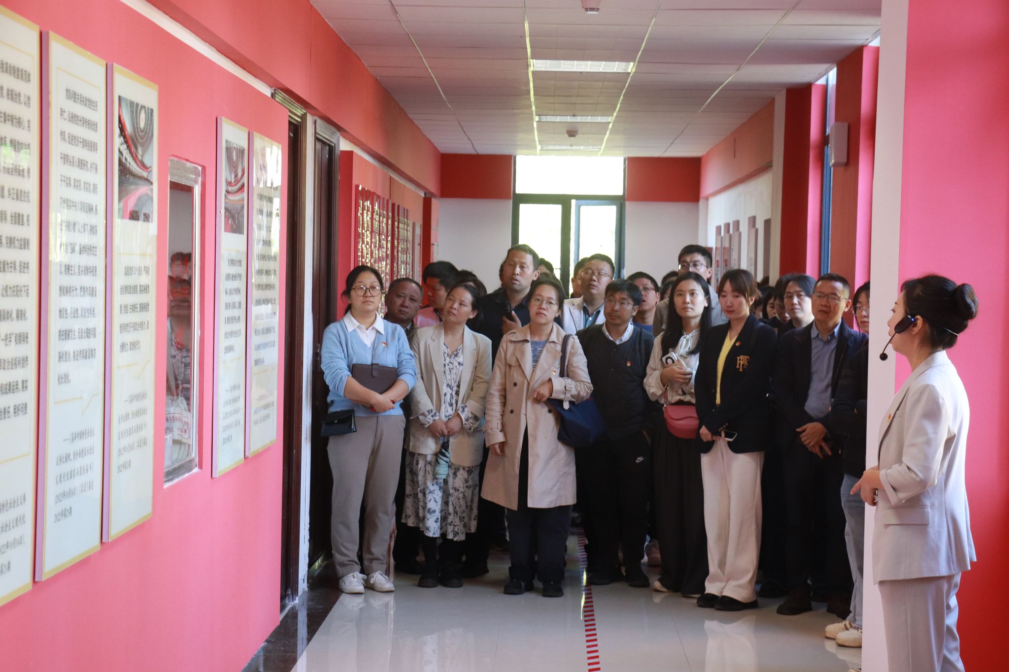 参访者通过认真聆听讲解,沉浸式体验了“途经红墙抬头望、漫步长廊静思量、潜移默化铸信仰、润物无声见成长”的党建育人创新模式。公司党委“红墙育人长廊”以“为党育人、为国育才”为主题,以党建引领公司育人工作发展为主线,因地制宜将公司教学楼一楼至三楼的走廊建造为以红色墙面为主色调的党建育人长廊。在内容设计上,“红墙育人长廊”由党的光辉历程、伟大精神谱系、伟大工程建设、党建引领发展、先锋模范典型、严守纪律规矩、公司党建育人特色实践等七个篇章组成,集中展示了党的建设取得的伟大历史成就、形成的伟大精神力量、涌现的先进模范、守护的良好政治生态,以及公司党建促进事业高质量发展方面取得的突出成效。特别是突出展示了公司党委认真贯彻落实党的教育方针,全面落实立德树人根本任务,努力培养德智体美劳全面发展的社会主义建设者和接班人的生动实践。
