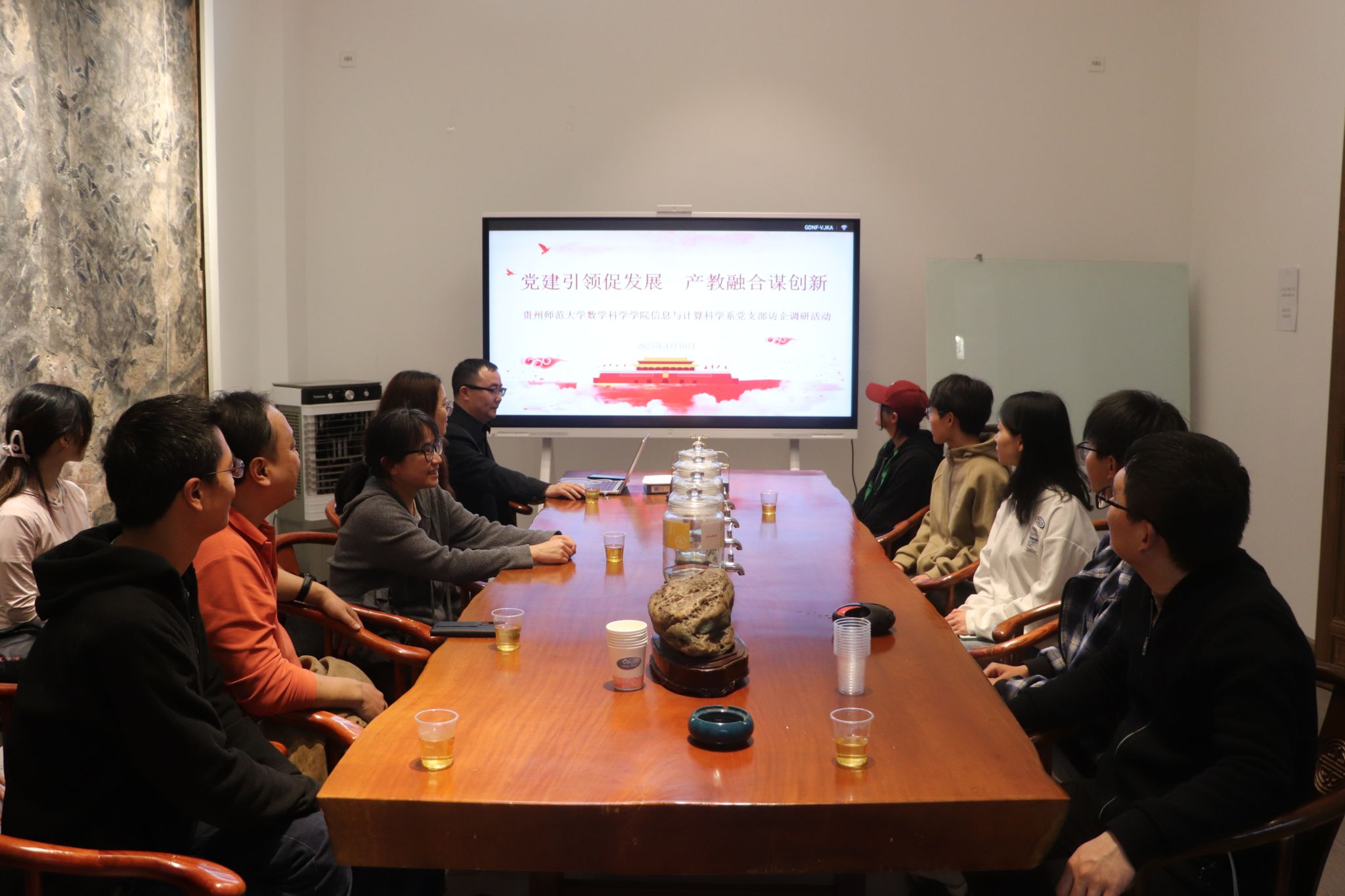 最后,信息与计算科学系党支部与贵州左藏酒谈社酒业销售有限公司开展了“党建引领促发展·产教融合谋创新”访企调研,通过访企调研进一步深入了解企业对人才能力素养的需求,为进一步深化信息与计算科学专业人才培养模式改革提供了实证参考。