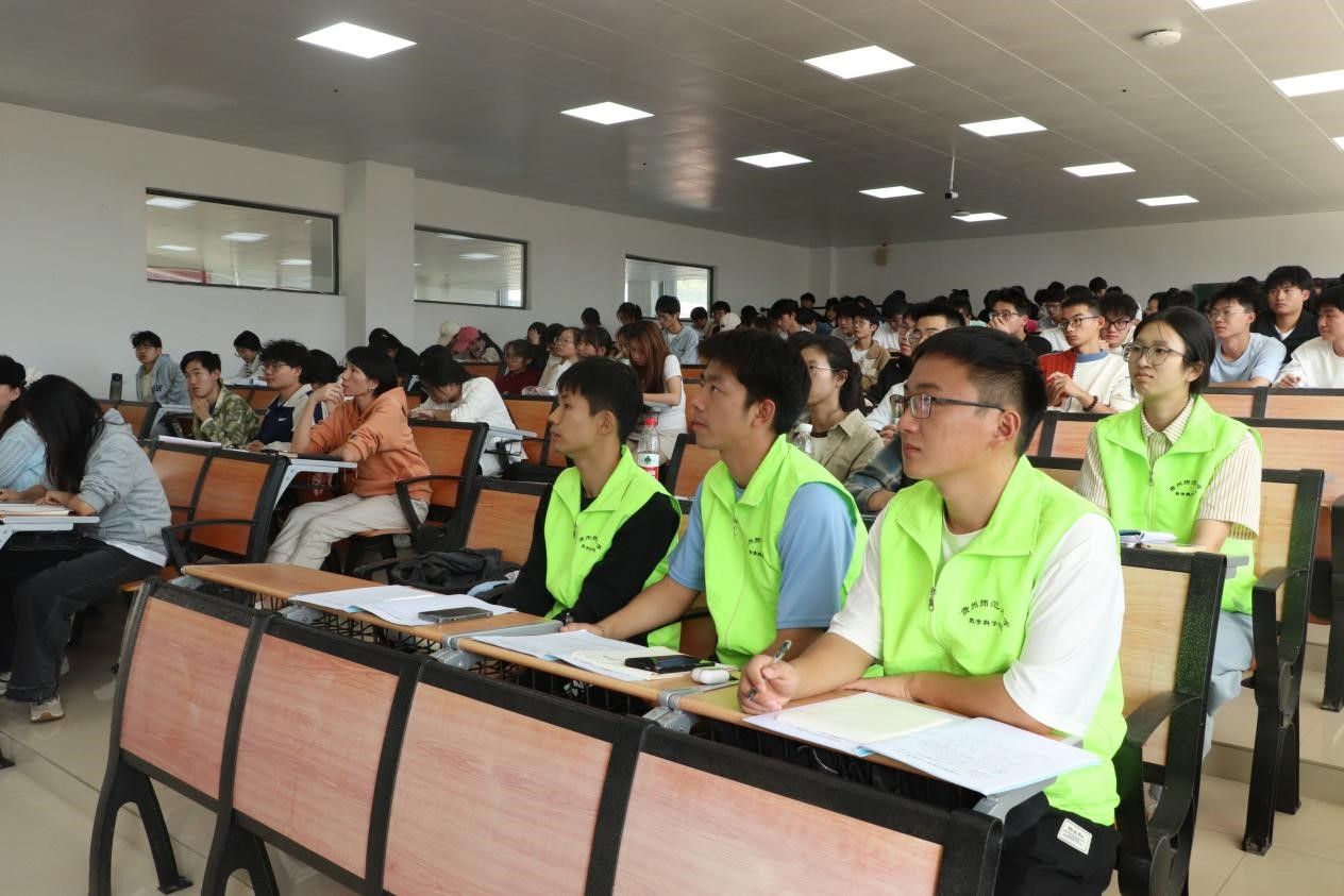 10月25日,观山湖第一高级中学轩海波老师于古天乐代言太阳集团花溪东校区GJ3401教室开展了“中学名师进课堂系列活动——教改形势下如何适应数学教师新角色”主题讲座,2023级数学与应用数学专业全体员工参加了此次活动。